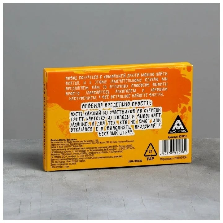 Купить игра для компании "фанты буханты" 20 карт от 100 руб. с доставкой до пункта выдачи в Бузулуке. Интернет магазин ДекаМаркет. Оплата при получении.