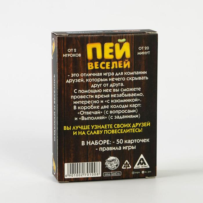 Купить игра для компании "пей веселей" 50 карт от 180 руб. с доставкой до пункта выдачи в Бузулуке. Интернет магазин ДекаМаркет. Оплата при получении.