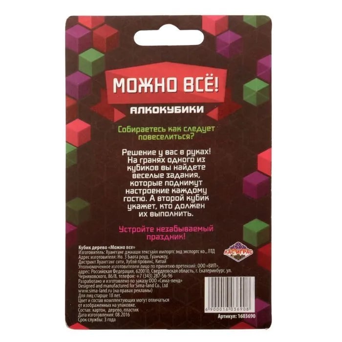 Купить кубик "можно все", алкокубики для принятия решений от 60 руб. с доставкой до пункта выдачи в Бузулуке. Интернет магазин ДекаМаркет. Оплата при получении.