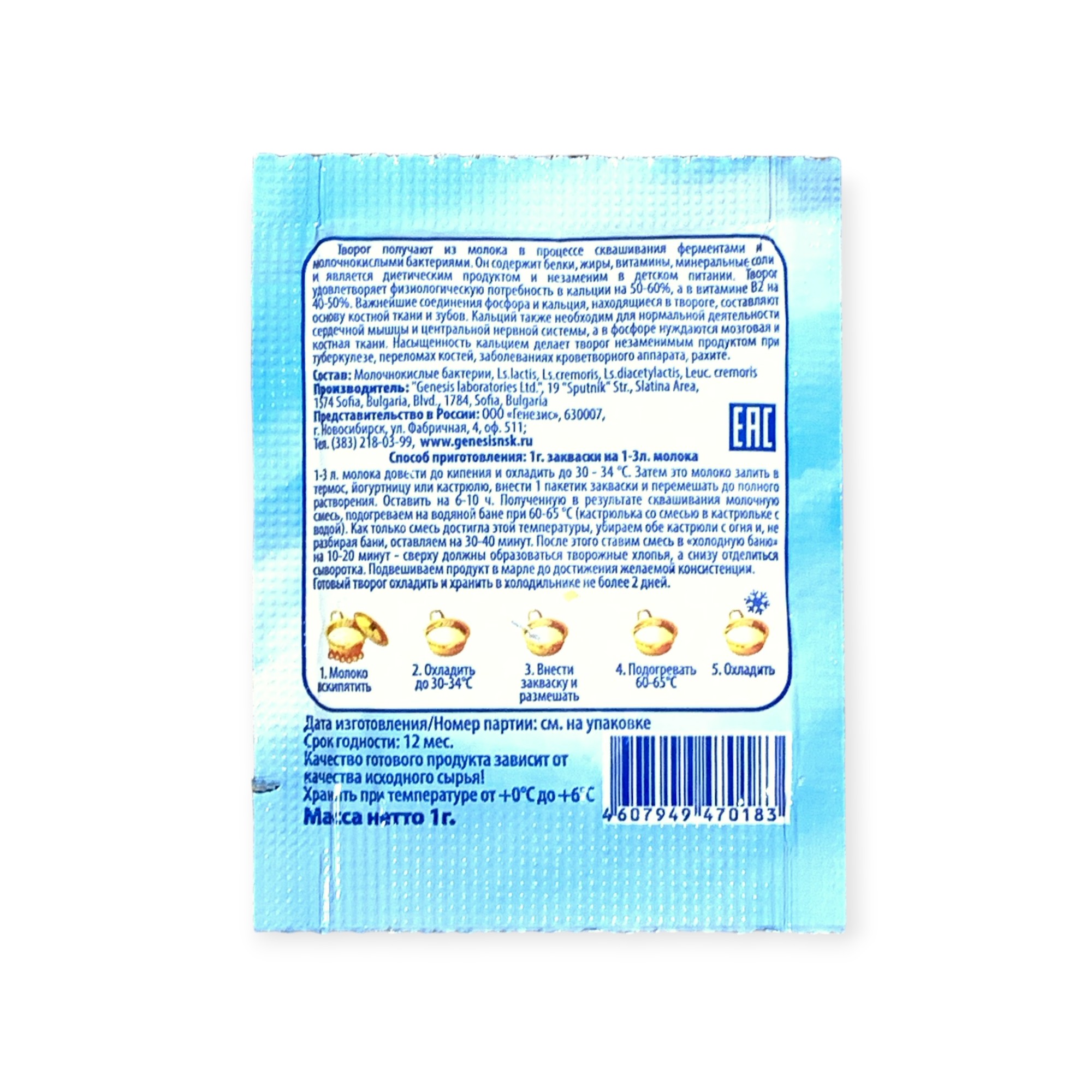 Закваска Творожок Genesis, 1 пакет от 100 руб. с доставкой. Пункт выдачи в Бузулуке. Интернет магазин по сыроделию. Всё всегда в наличии.